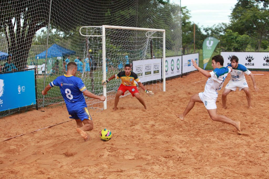 Herói: ser humano que executa ações excepcionais com coragem e bravura. Essa é a campanha “Você Herói” lançada pela Confederação Brasileira de Desportos Universitários (CBDU) para os Jogos Universitários Brasileiros (JEBs) em 2019. E foi assim que os atletas do Beach Soccer iniciaram os jogos de praia, no parque Sarah Kubistchek, situado na Capital Federal. Debaixo de um mormaço, as equipes masculinas da Universidade de Brasília (UnB) e do Centro Universitário Maurício de Nassau (Uninassau) de Pernambuco deram partida ao campeonato em um jogo muito disputado. A equipe brasiliense bem que tentou, mas os pernambucanos levaram por 6 x 5.